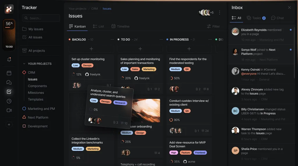 Huly, a comprehensive platform, serves as an all-in-one replacement of Jira, Slack, and Notion.